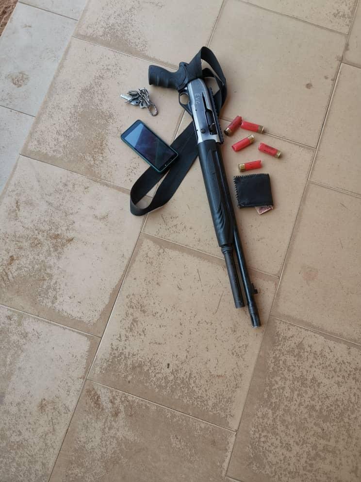- A pump-action rifle: The primary weapon, indicating a planned and serious criminal intent.